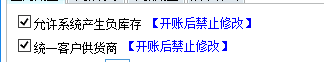 统一客户供货商:用于往来单位既是客户,又是供货商的情况,使用户在业务开单时能够选择对应的往来单位。该配置选项在开账后不允许修改